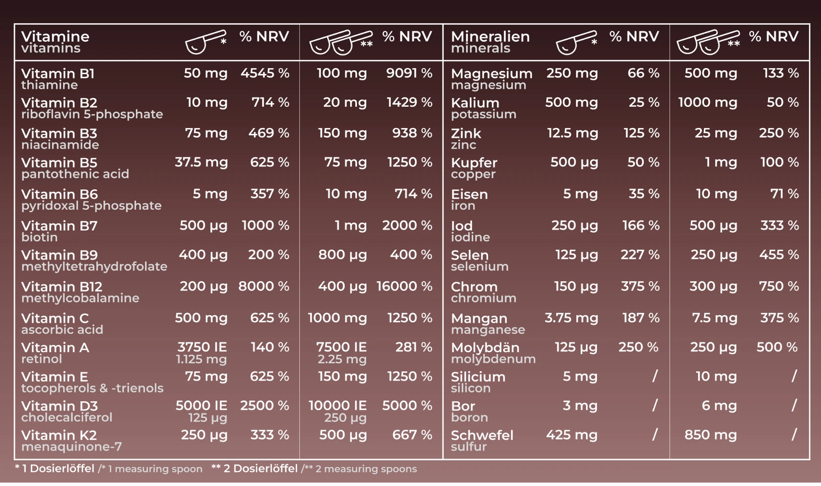 26 Vitaminen und Mineralstoffen