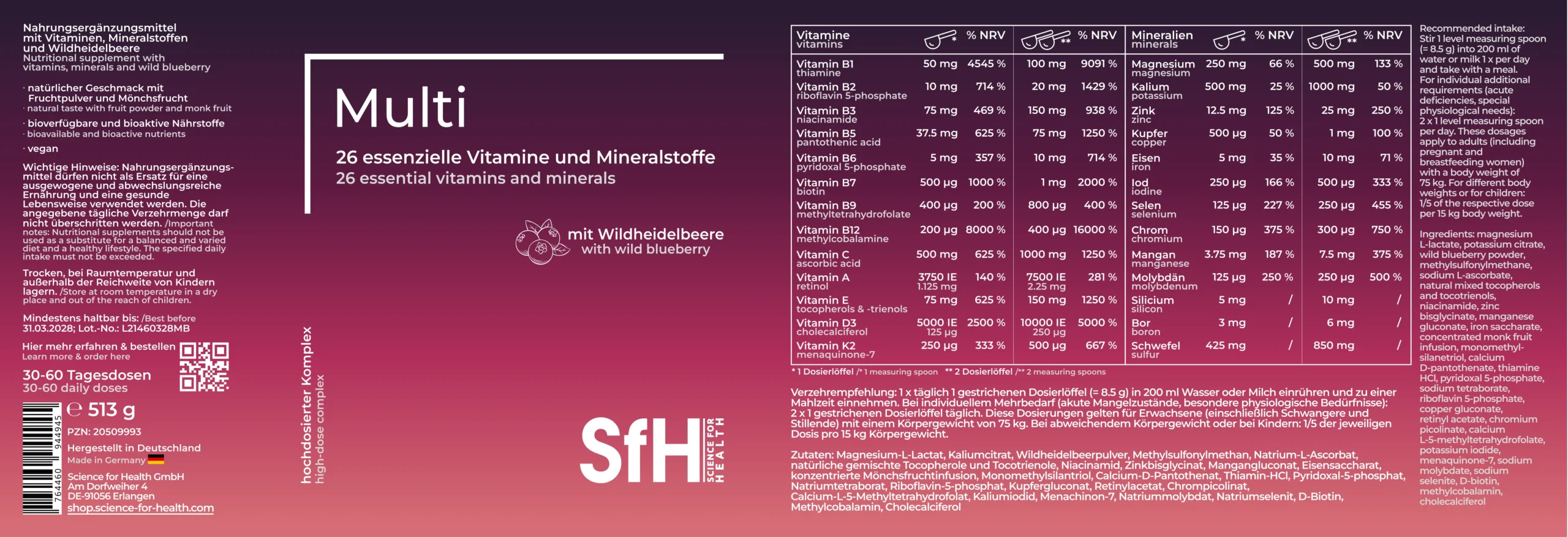 Produktinformationen Multi Wildheidelbeere