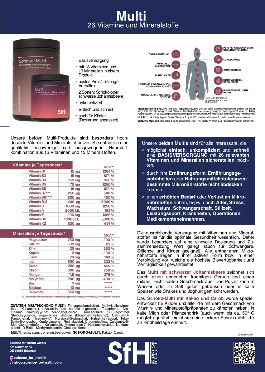 Dieses Produkt ist einzigartig auf dem Markt. Als HSP mit Hashimoto bin ich auf Nahrungsergänzugsmittel angewiesen, um mich fit und wohl zu fühlen. Bei diesem Multi bleiben keine Wünsche offen. Es sind alle Vitamine und Mineralstoffe enthalten, die der Körper benötigt und das in ausreichender Menge. Ich fühle mich energetischer und leistungsfähiger als je zuvor. Vielen Dank 🙂