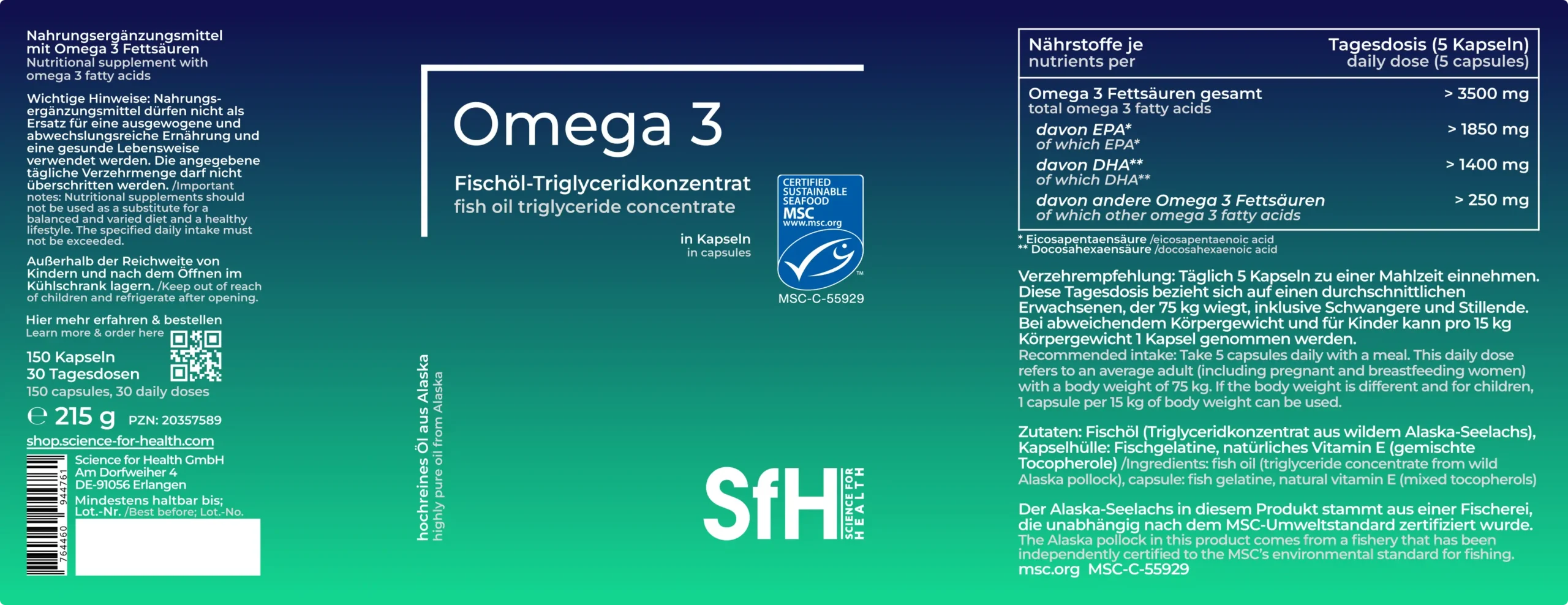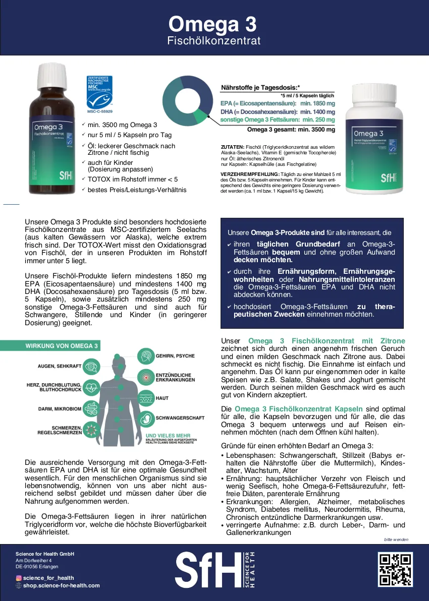 Omega 3 ist superwichtig für fast alle Vorgänge im Körper. Schön, dass es bei SfH dieses Produkt gibt. Es ist hochdosiert, leicht einzunehmen und man kann die Tagesdosis (5 Kapseln) einfach überall mitnehmen und ist bestens versorgt. Eine klare Kaufempfehlung!